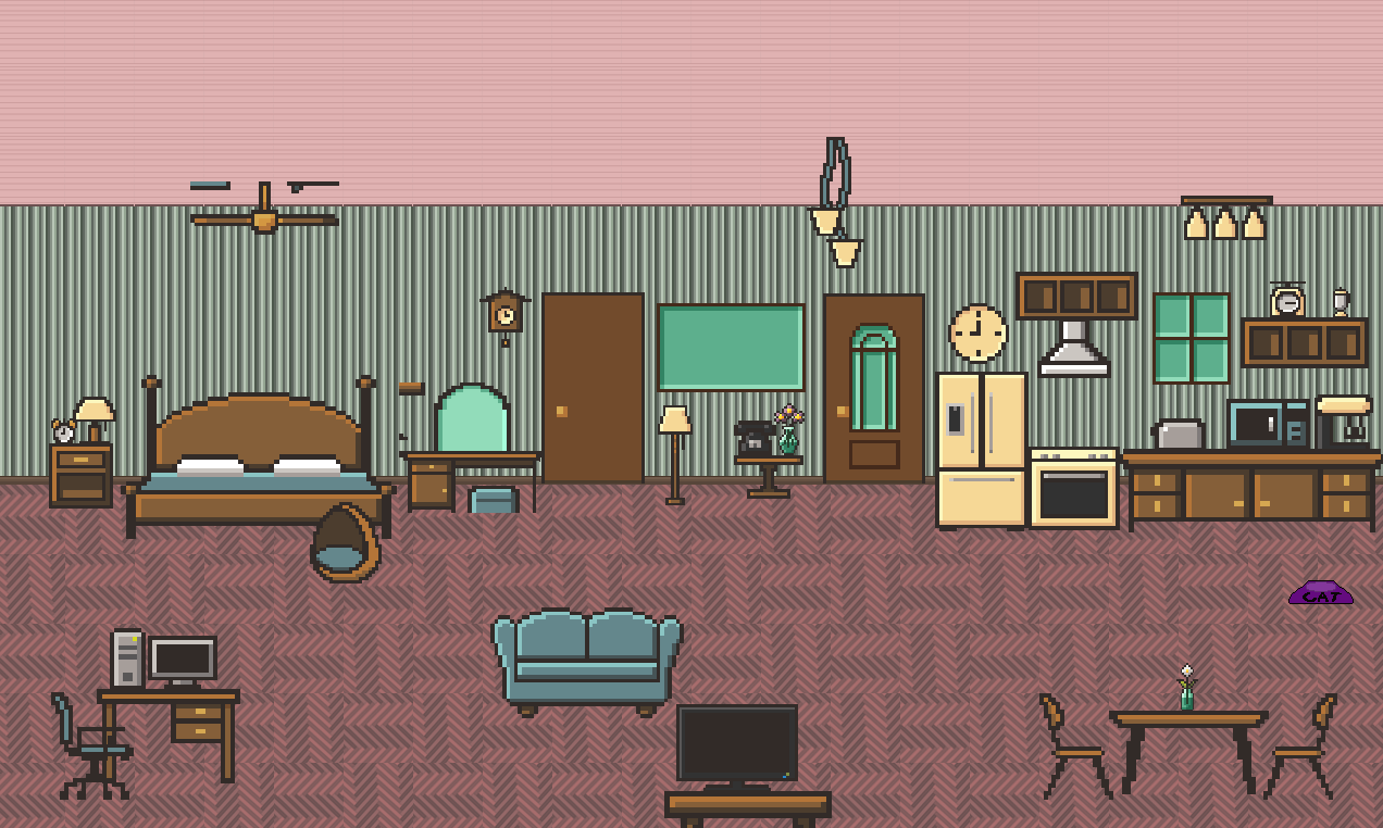 You play as the cat who has some basic needs like hunger, affection, playing and sleep. You want to fullfill all your needs while simultaniously minding your human's emotional states. You influence those with your behaviour. If you don't make your human angry and keep them happy, they will cuddle and play with you. If they're mad they might not be up for cuddles, so you should be mindful of that when trying to fulfill your need for affection.